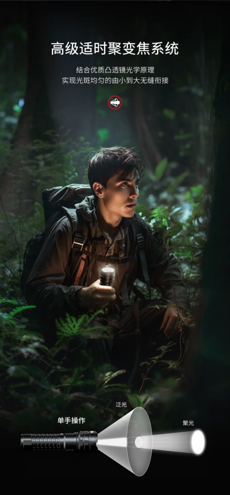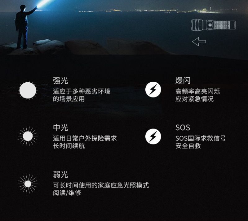 懐中電灯強光充電超明るい家庭用屋外小型携帯ミニズーム遠射登山照明灯