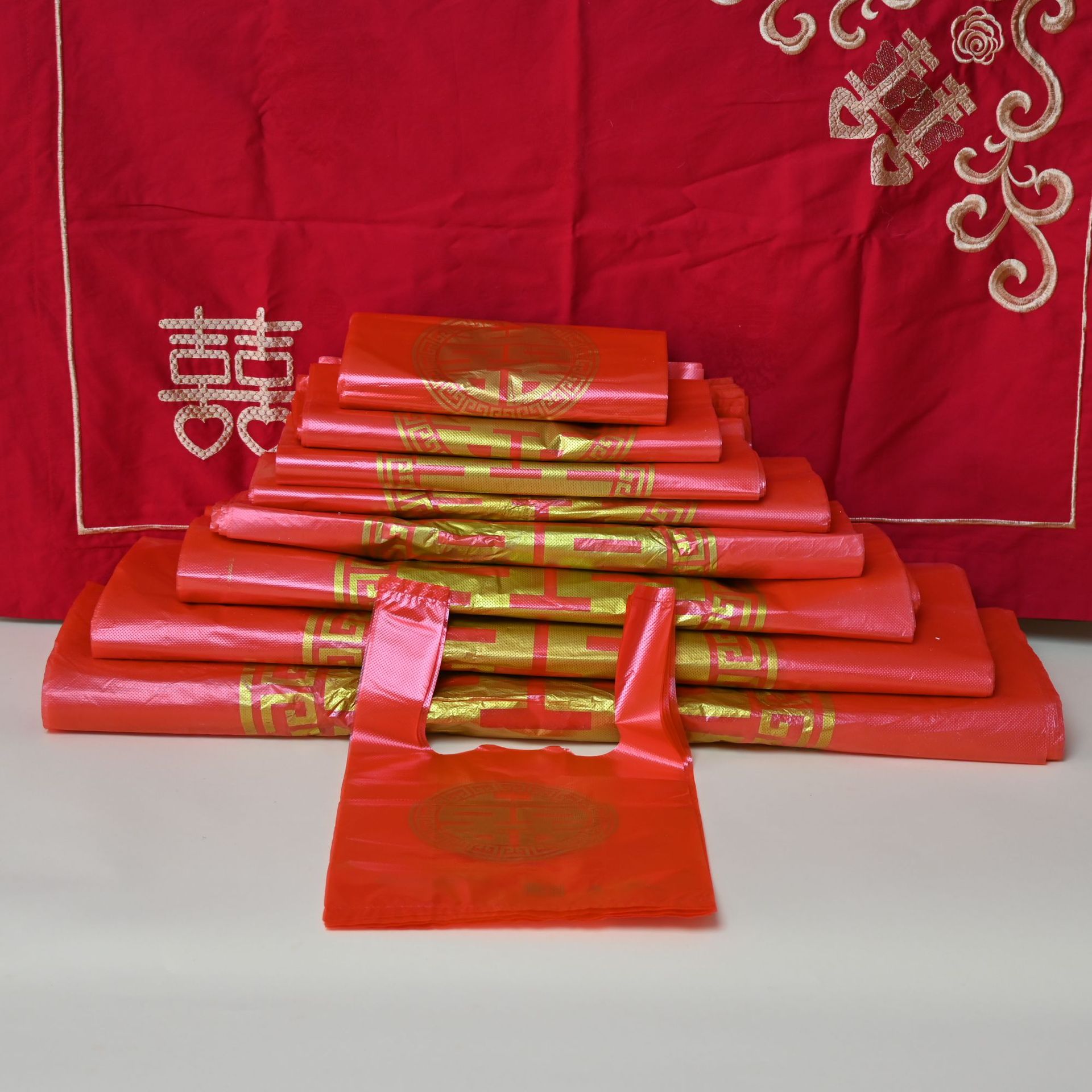 赤いビニール袋双喜手提げ袋結婚祝い満月プレゼント袋ベスト福字喜字袋卸売り