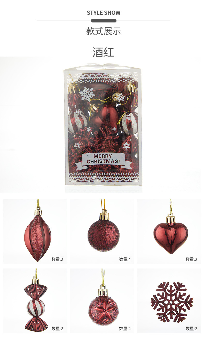 新品クリスマスボールセット6cm色絵形球粉をまぶした雪のスライスセットクリスマス用品クリスマス用品クリスマス
