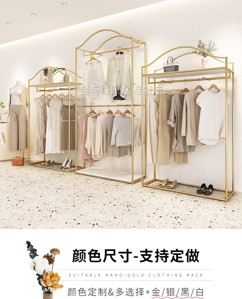 シンプルな現代服装店の展示棚ハンガー床置き式女装子供服棚洗濯物を干すシングルロッド龍門棚