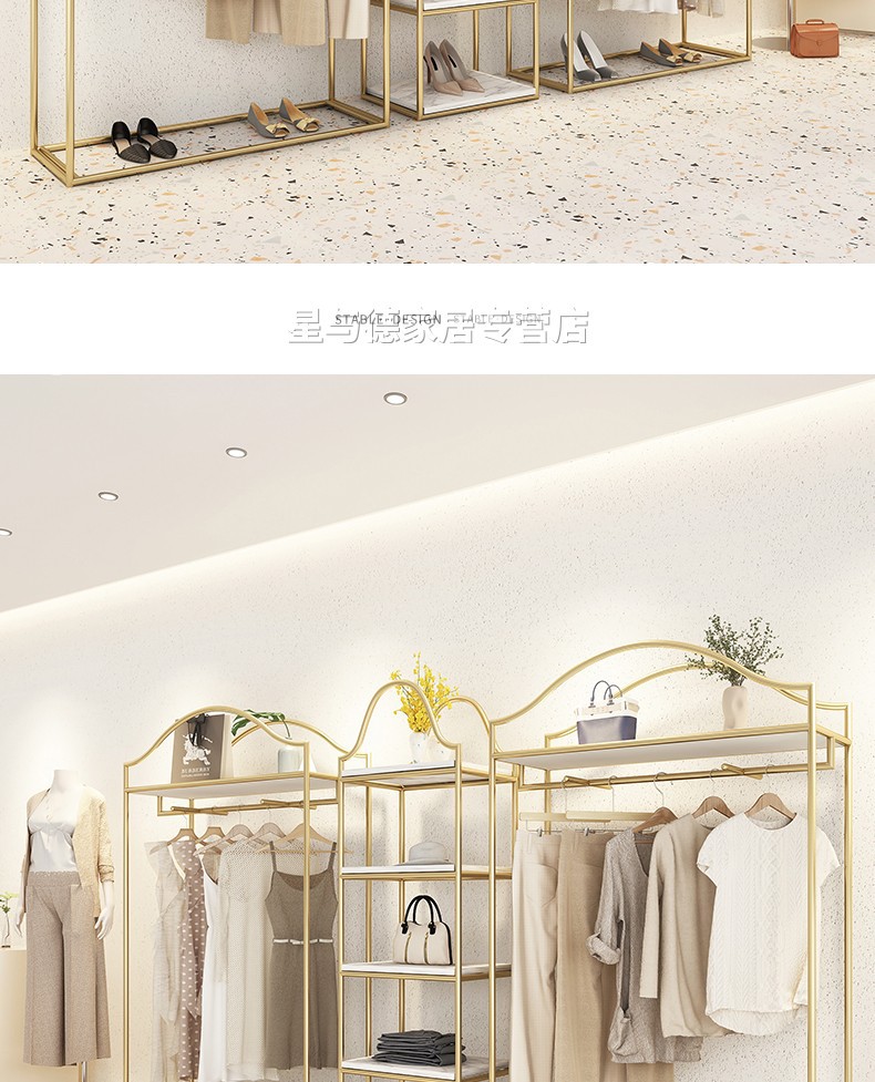 新型子供服棚洋服店床置き式壁棚組み合わせ棚子供服店展示棚鉄木結合棚