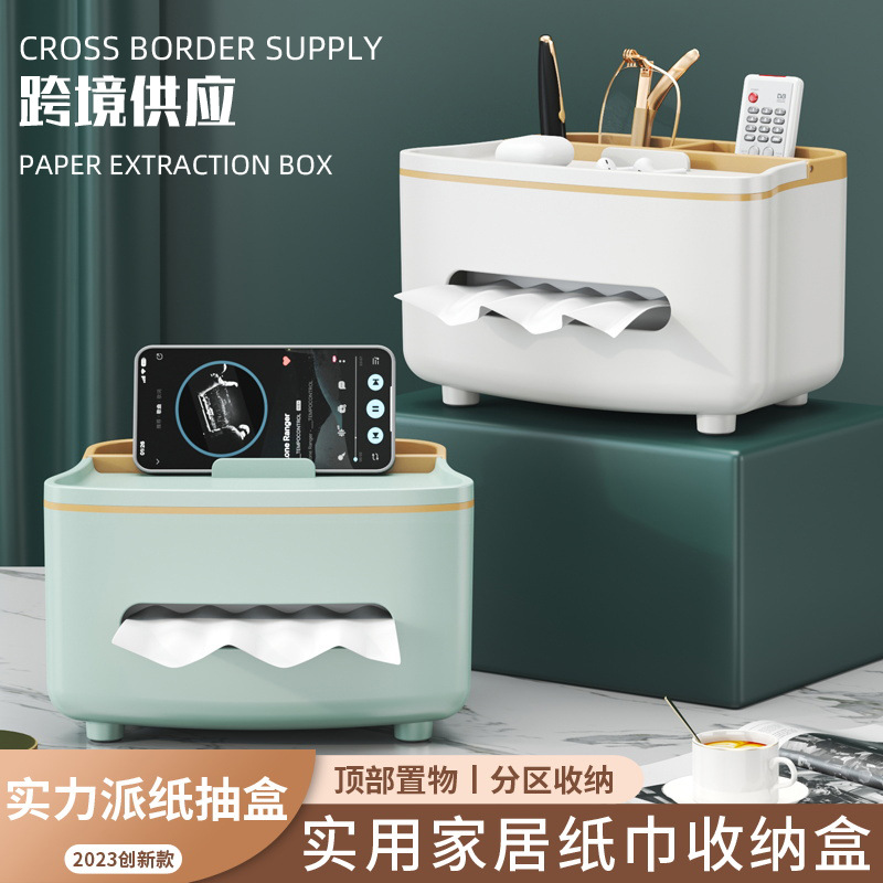 跨境供应纸巾盒客厅轻奢抽纸盒高级感桌面创意茶几遥控器收纳盒