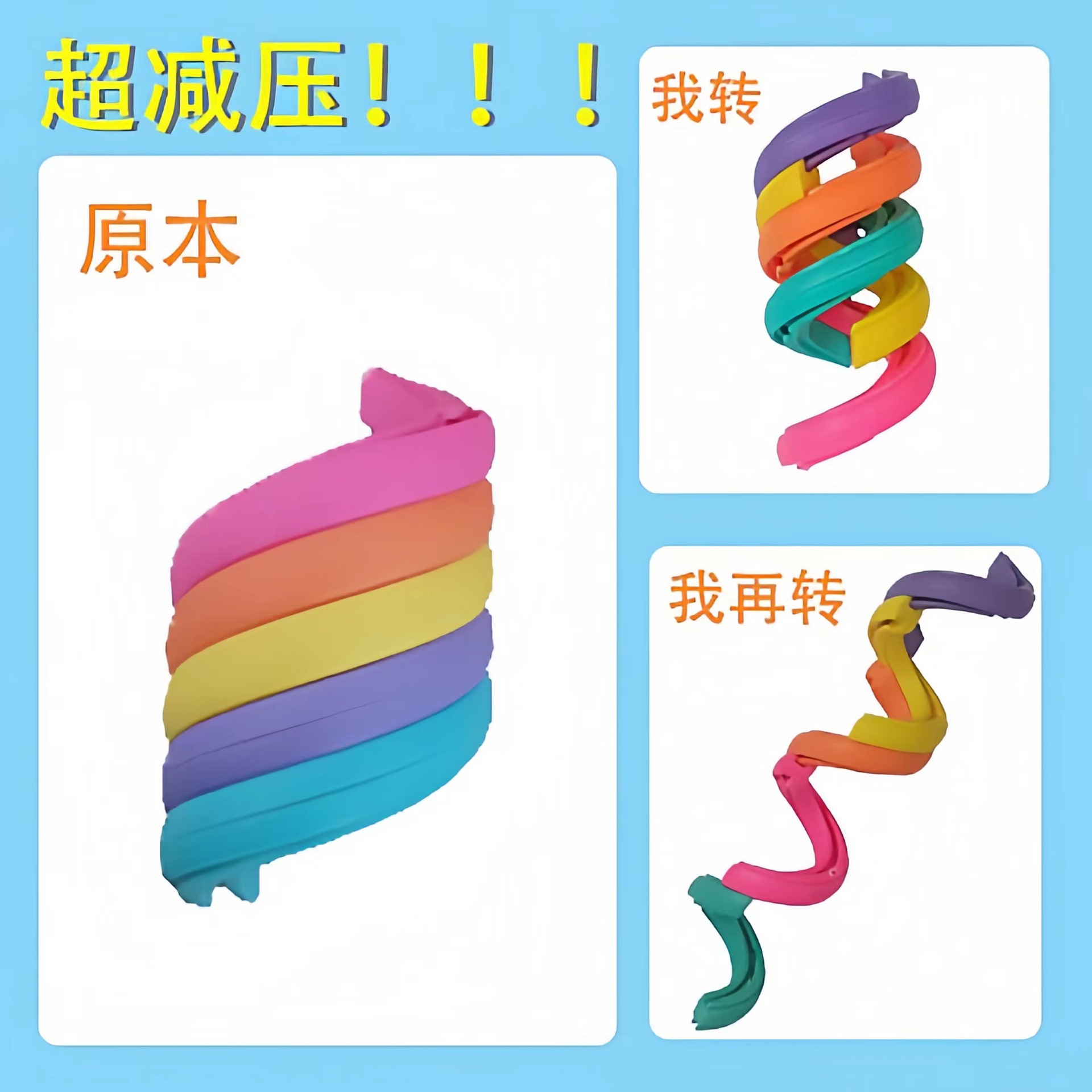 越境児童益智指先虹輪回転楽プラスチック螺旋単コイルねじり楽百変舒圧玩具