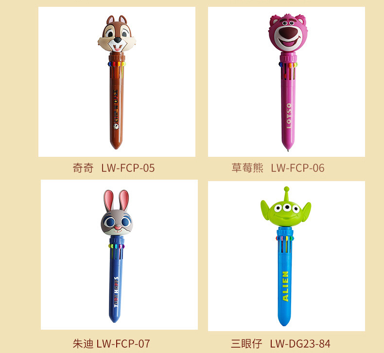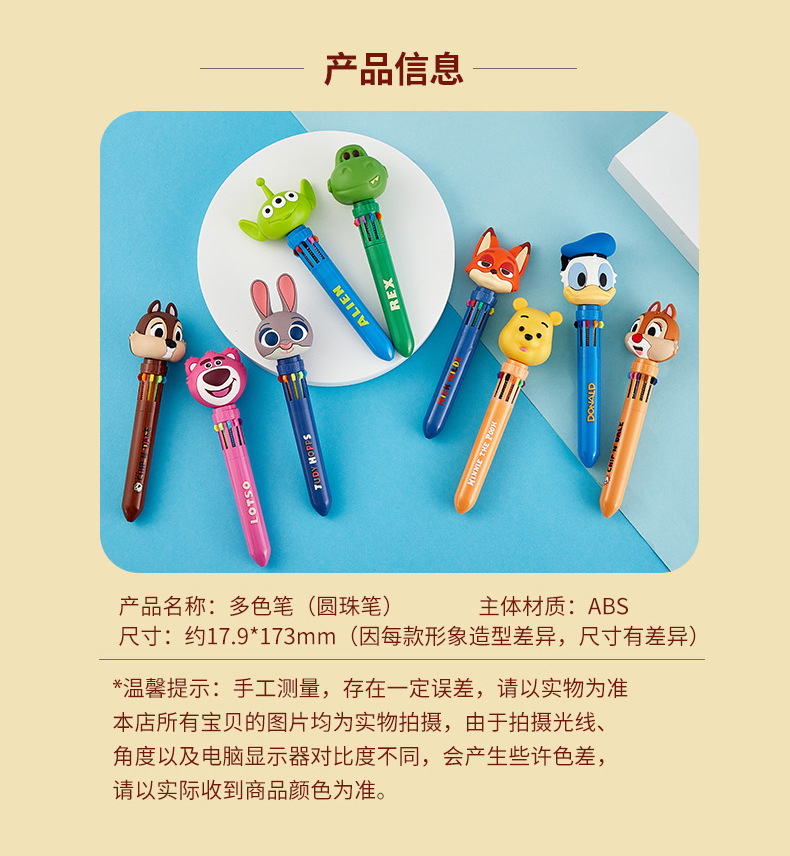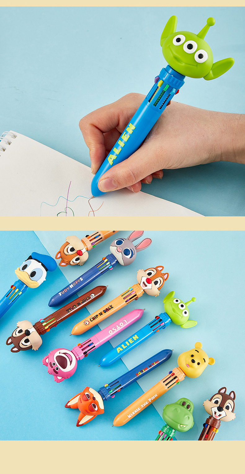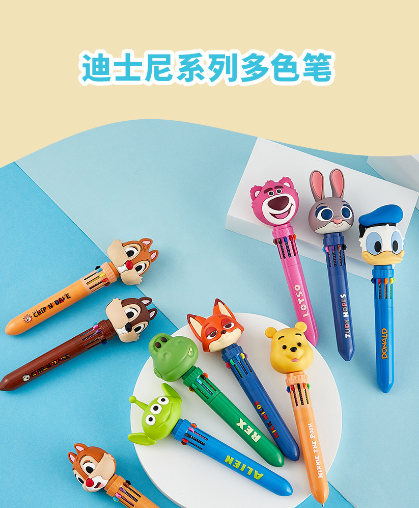 ディズニー正規品 漫画柄10色ボールペン クリエイティブで可愛い学生文具 多色プッシュペン 子供へのプレゼント