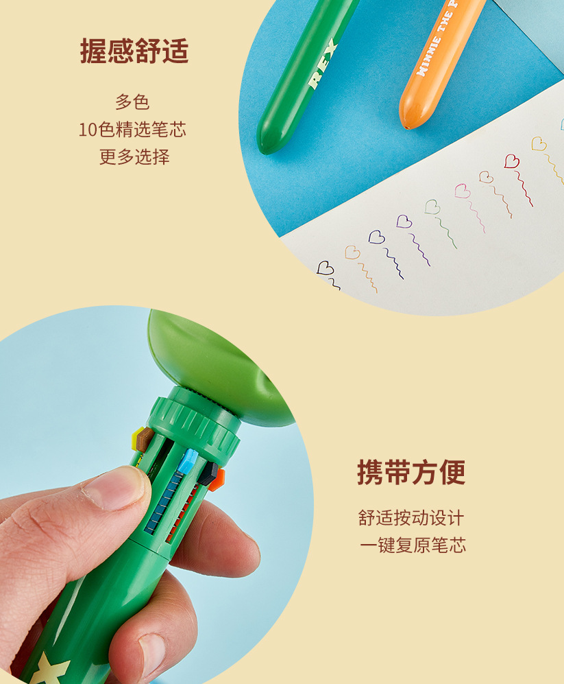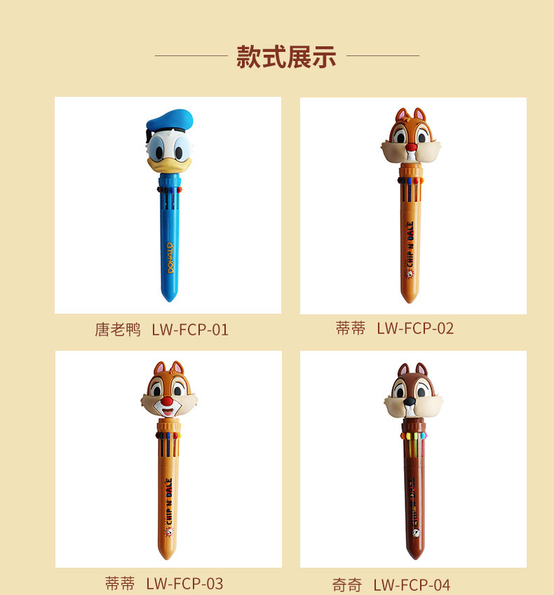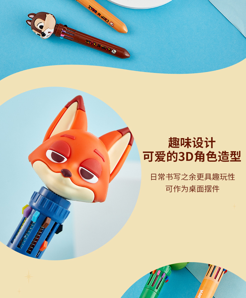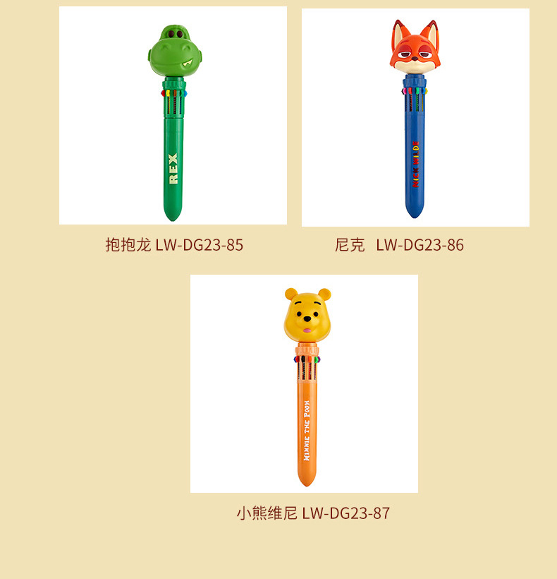 ディズニー正規品 漫画柄10色ボールペン クリエイティブで可愛い学生文具 多色プッシュペン 子供へのプレゼント