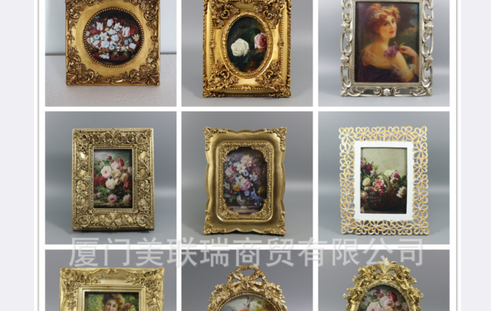 ヨーロッパ風レトロな金樹脂製フォトフレーム装飾背景壁掛け組み合わせ額縁宮殿風古典額縁卓上飾り