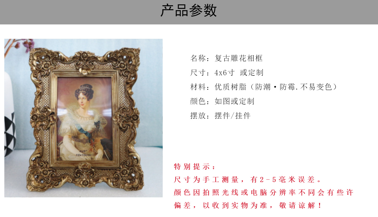 工場直接供給ヨーロッパバロックスタイルレトロ手彫り樹脂フォトフレーム 4inch フレームインスタイル装飾