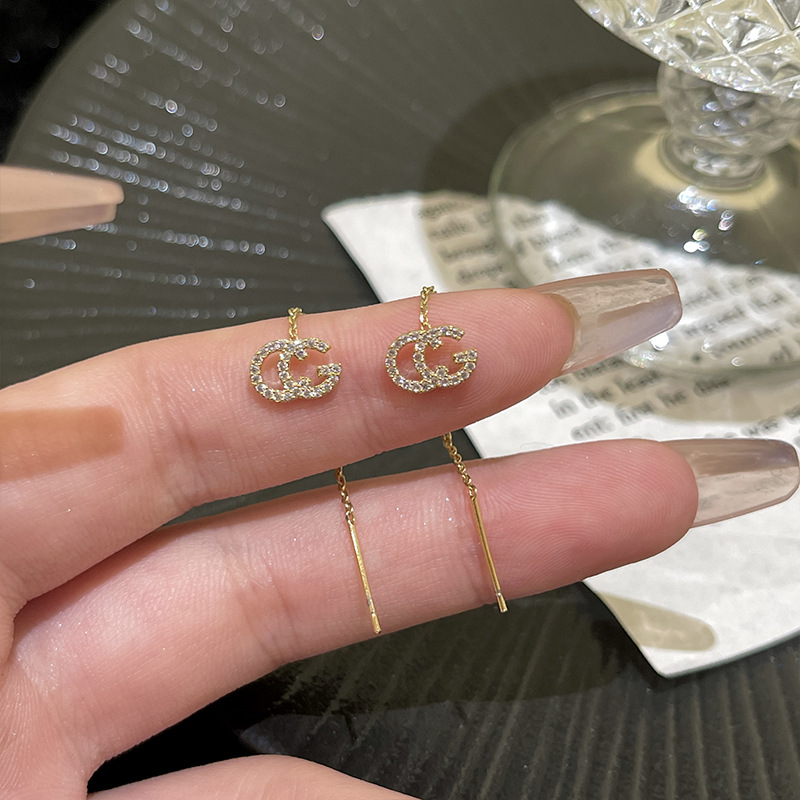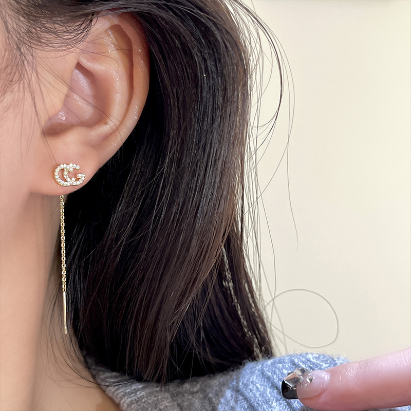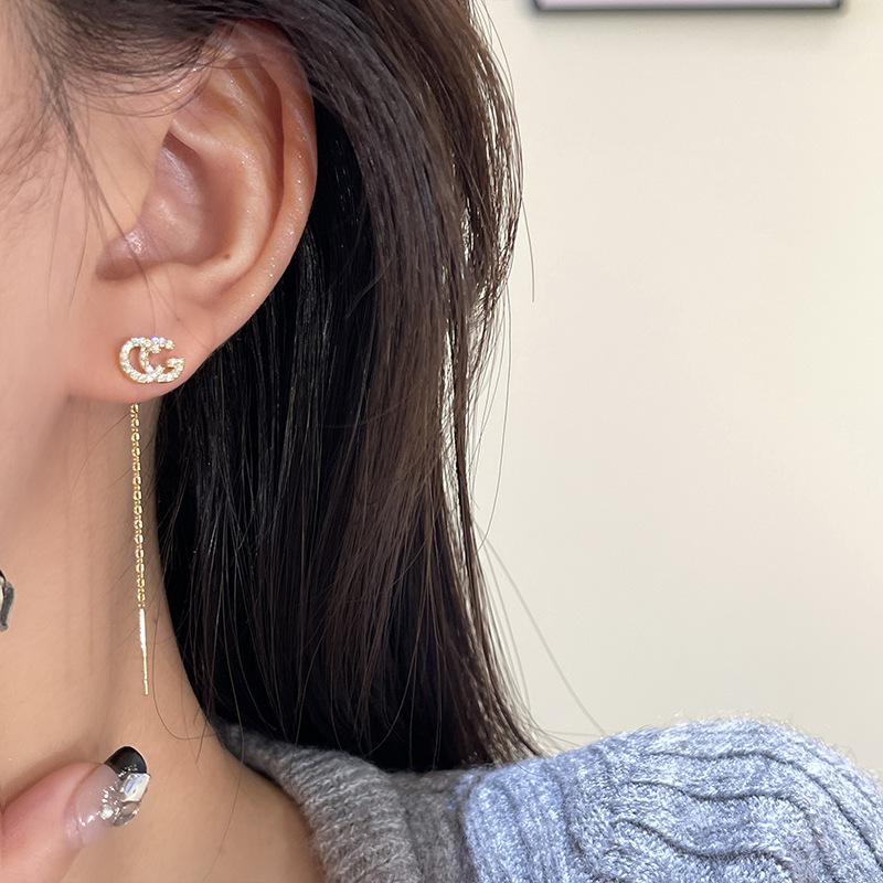 CG耳糸小香風アルファベットイヤリング流蘇耳釘耳糸小清新シンプル百合イヤリング小大衆デザイン感