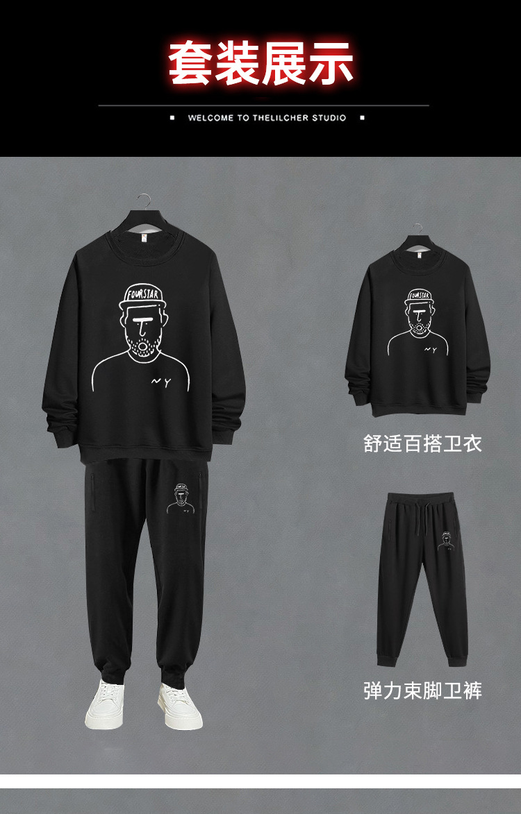 DW1001-DW1042特大サイズ400斤運動綿合集デブ不加毛衛衣ズボン男秋冬
