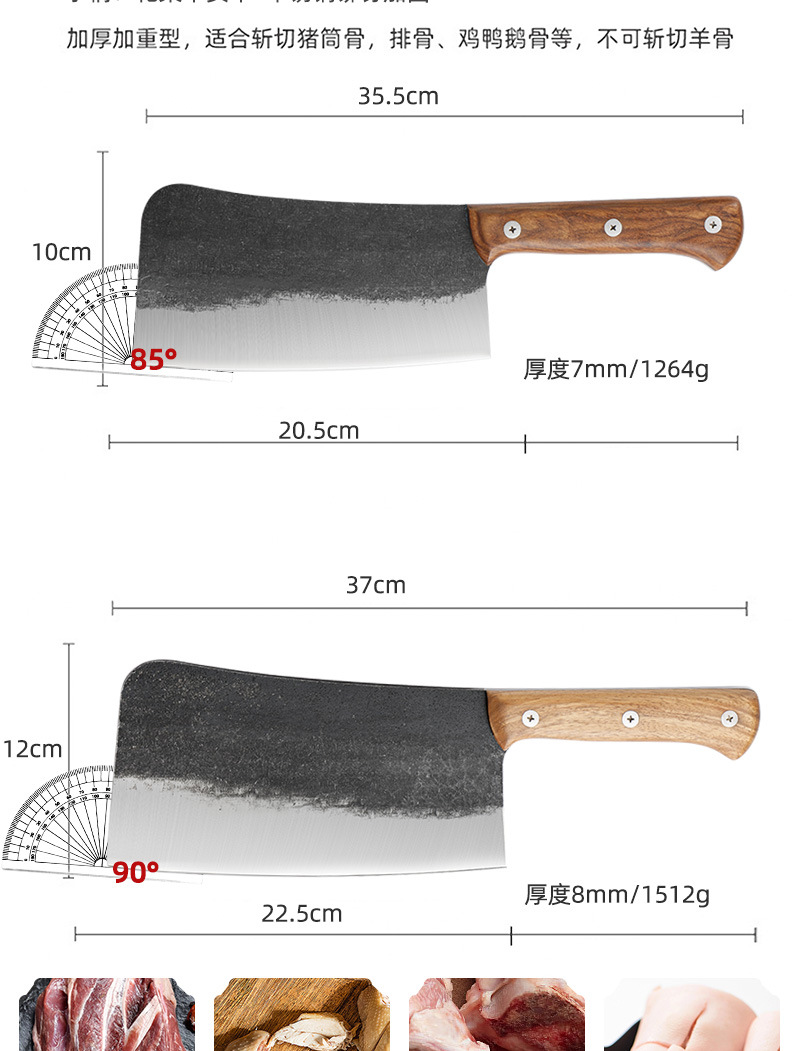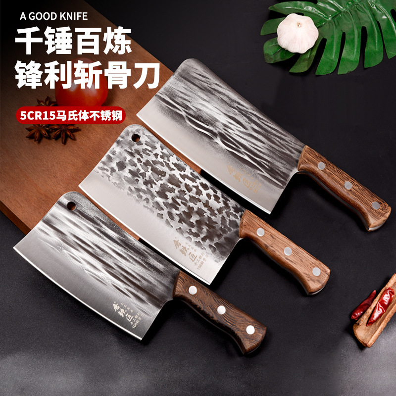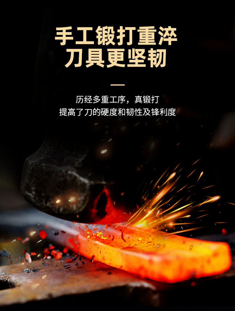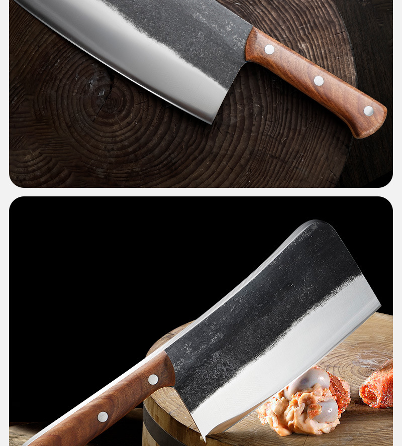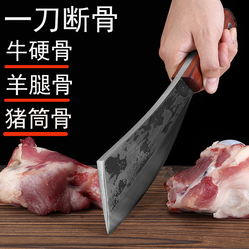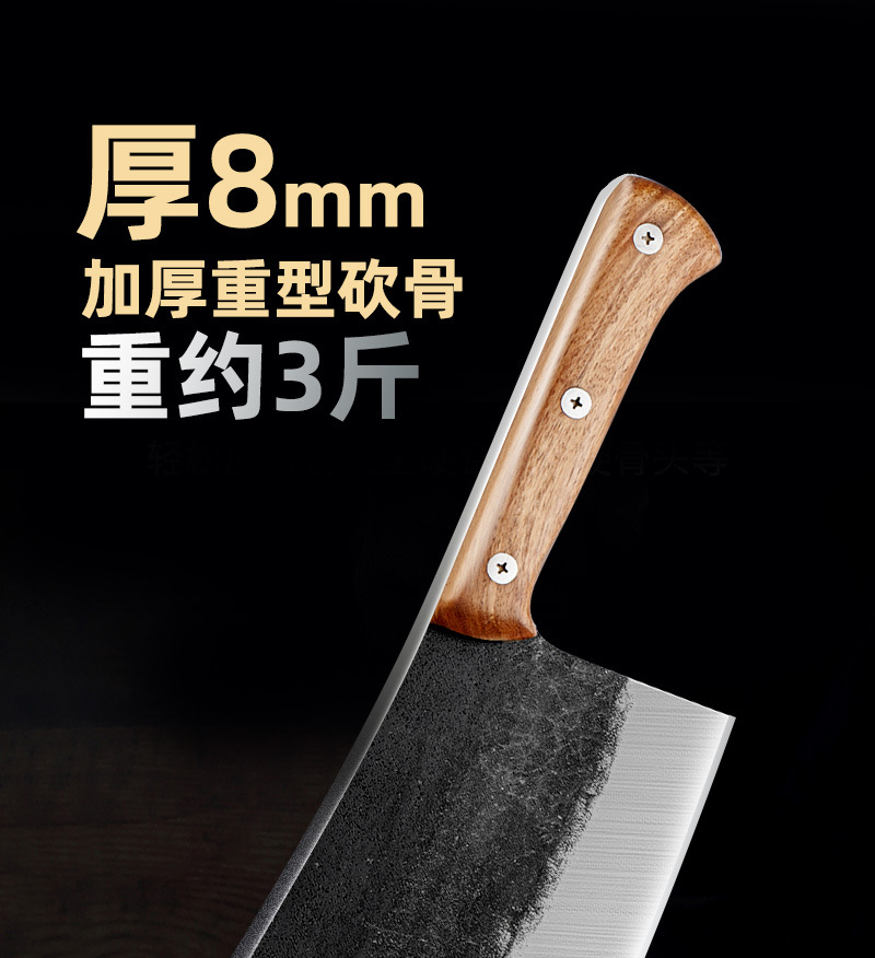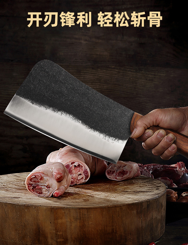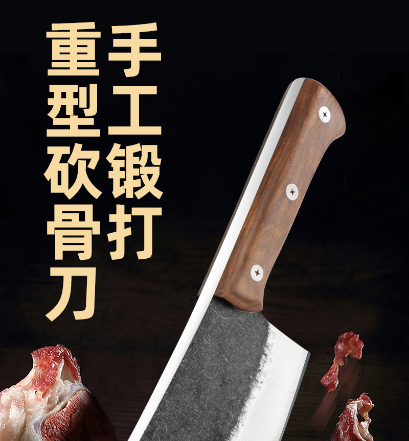 弹簧钢手工锻打加厚砍切刀酒店专用厨师砍切刀跑江湖批发锻打骨刀