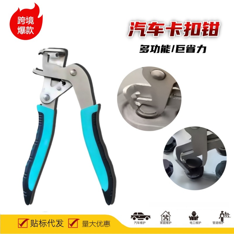 跨境厂不锈钢汽车卡扣钳拆卸胶扣柳钉橡胶塑料螺帽内饰板汽修工具