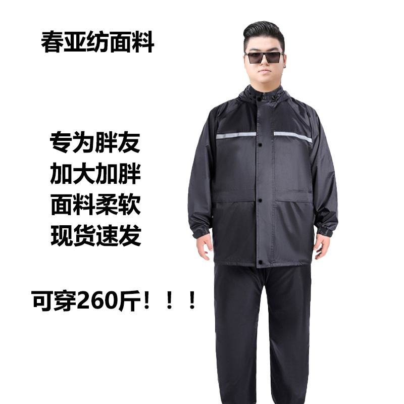 太って大きいサイズのレインコートとレインパンツのセットが太っています。