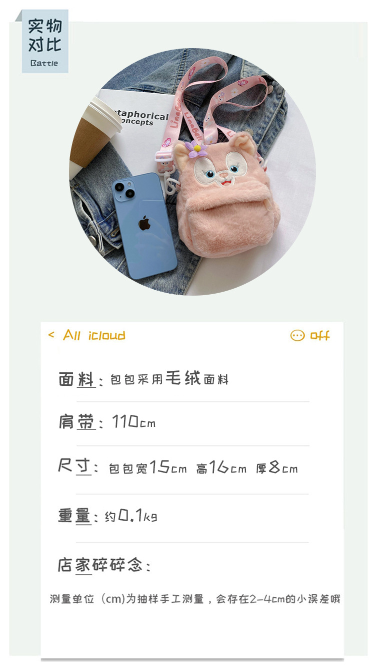 新款卡通尼克朱迪玩偶斜挎包手机包立体毛绒软萌背包少女JK单肩包