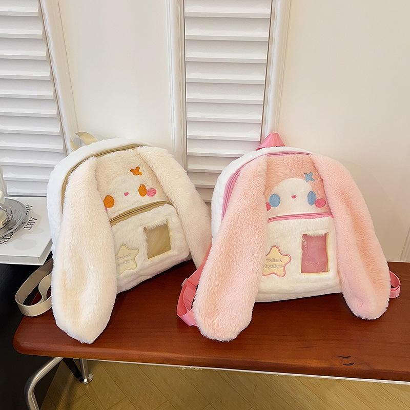 2025新型少女甘くて柔らかい萌えの長い耳のウサギのぬいぐるみの包みの高い顔の値の透明な大容量のリュックサックの卸売り