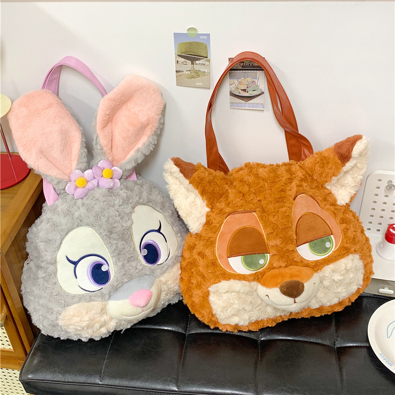 新款跨境疯狂动物城斜挎包毛绒背包潮流百搭可爱外出搭配毛绒包包