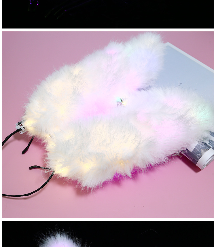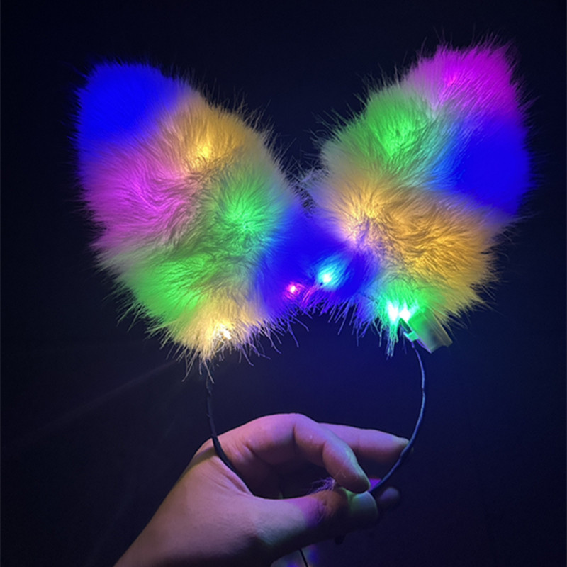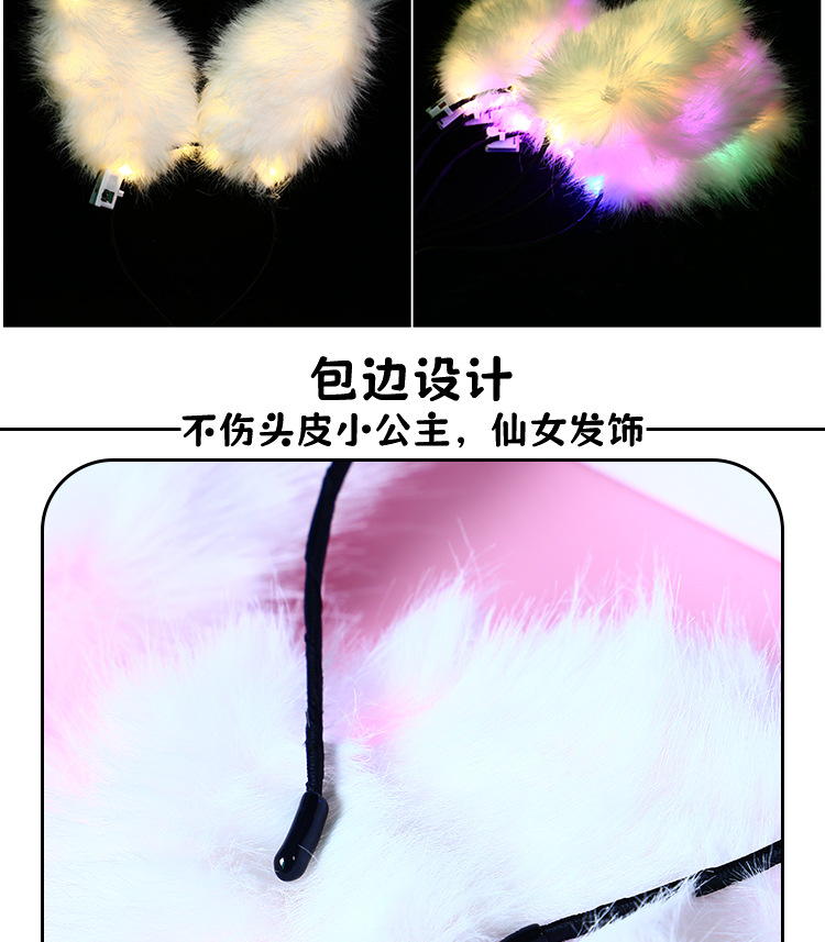 クロスボーダーの人気販売発光14灯の羽のウサギの耳のキツネの毛のカチューシャの頭飾りのバーの舞踏会の露店の夜市の商品の供給源