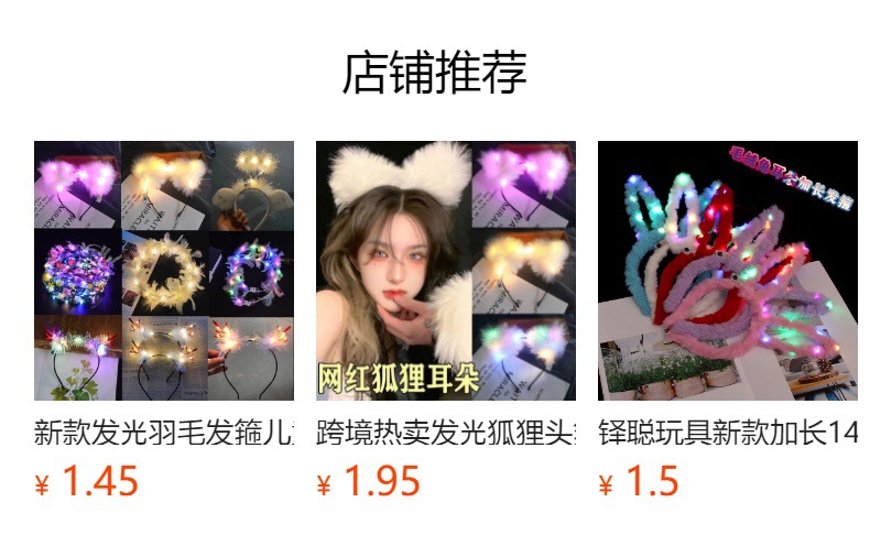 光る髪のカチューシャの頭飾りのキツネの毛の猫の耳のカチューシャの春節の屋台の夜市は屋台の小さい商品のおもちゃを並べて卸売りします。