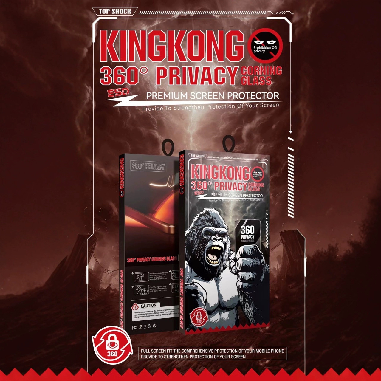 大金剛の携帯電話の強化膜の包装箱は防爆膜の表面のスクリーンの保護膜を覗き見して立体の紙の箱を拡大します。