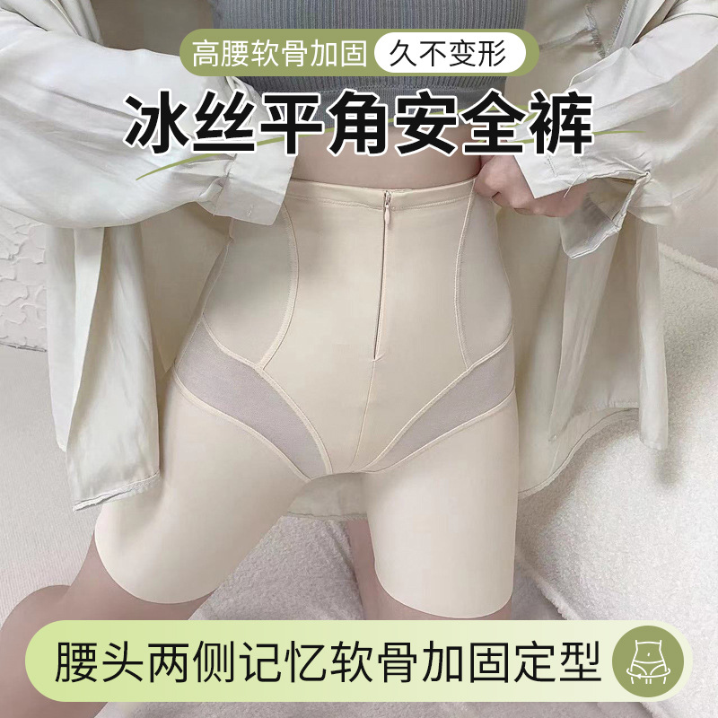2026年新作レディース通気性ハイウエストジッパー付きボタン留めウエスト引き締めヒップアップお腹引き締めアイスシルク平角快適安全パンツ
