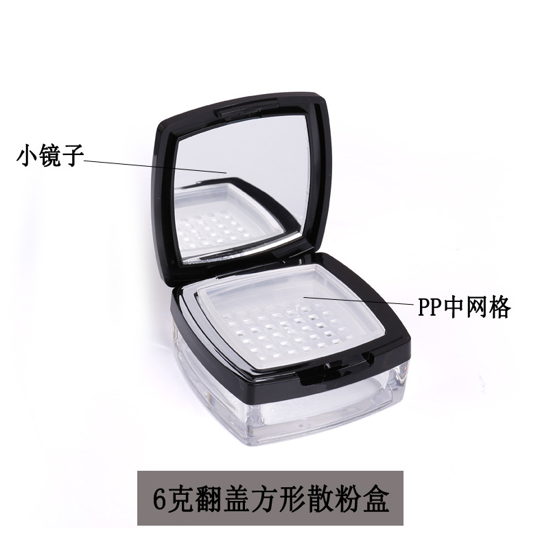 在庫あり 8143 ルースパウダーボックス マットブラック 6g スクエアフリップカバー ミラー付き透明ボックス メイクアッププラスチック包装材料 化粧品容器