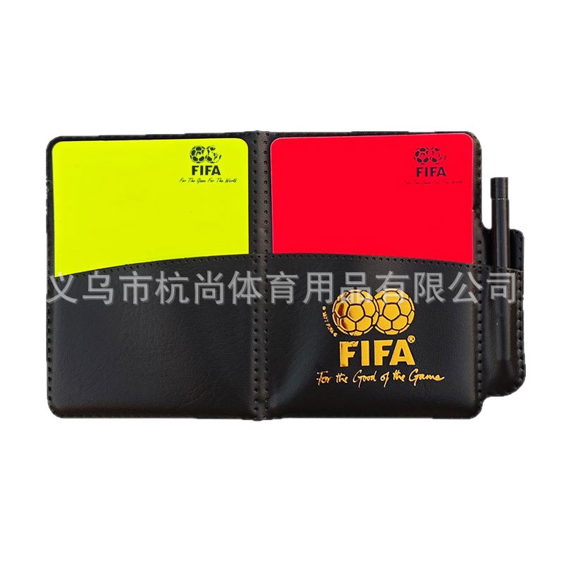 足球裁判红黄牌黄牌红牌足球带纸带铅笔带皮套裁判记录判罚黄红牌