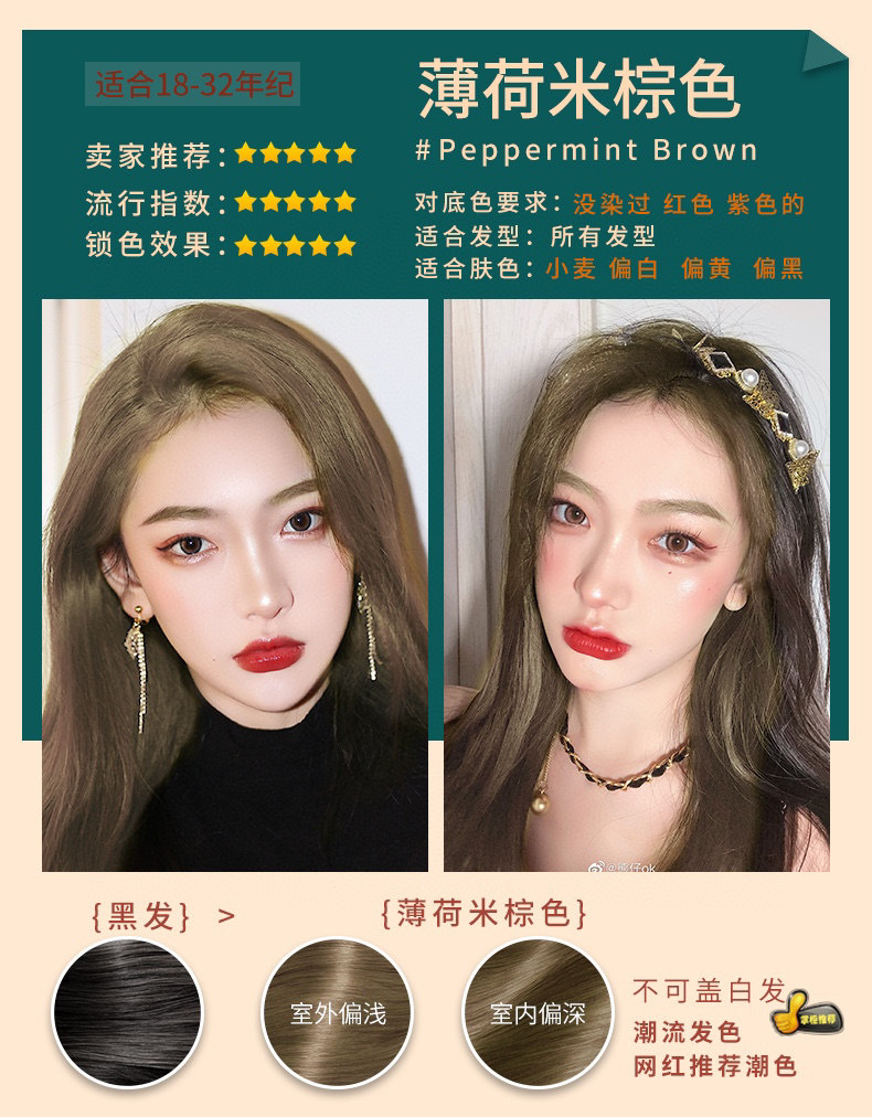 三井炫彩染发焗油膏植物萃取无胺味染发护发染色换色自然色