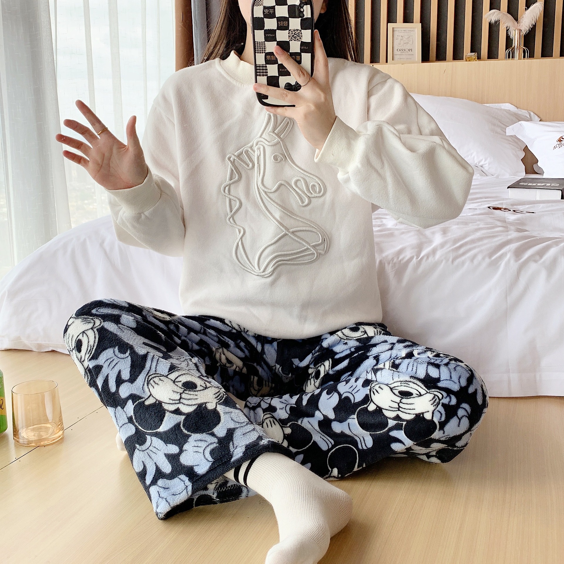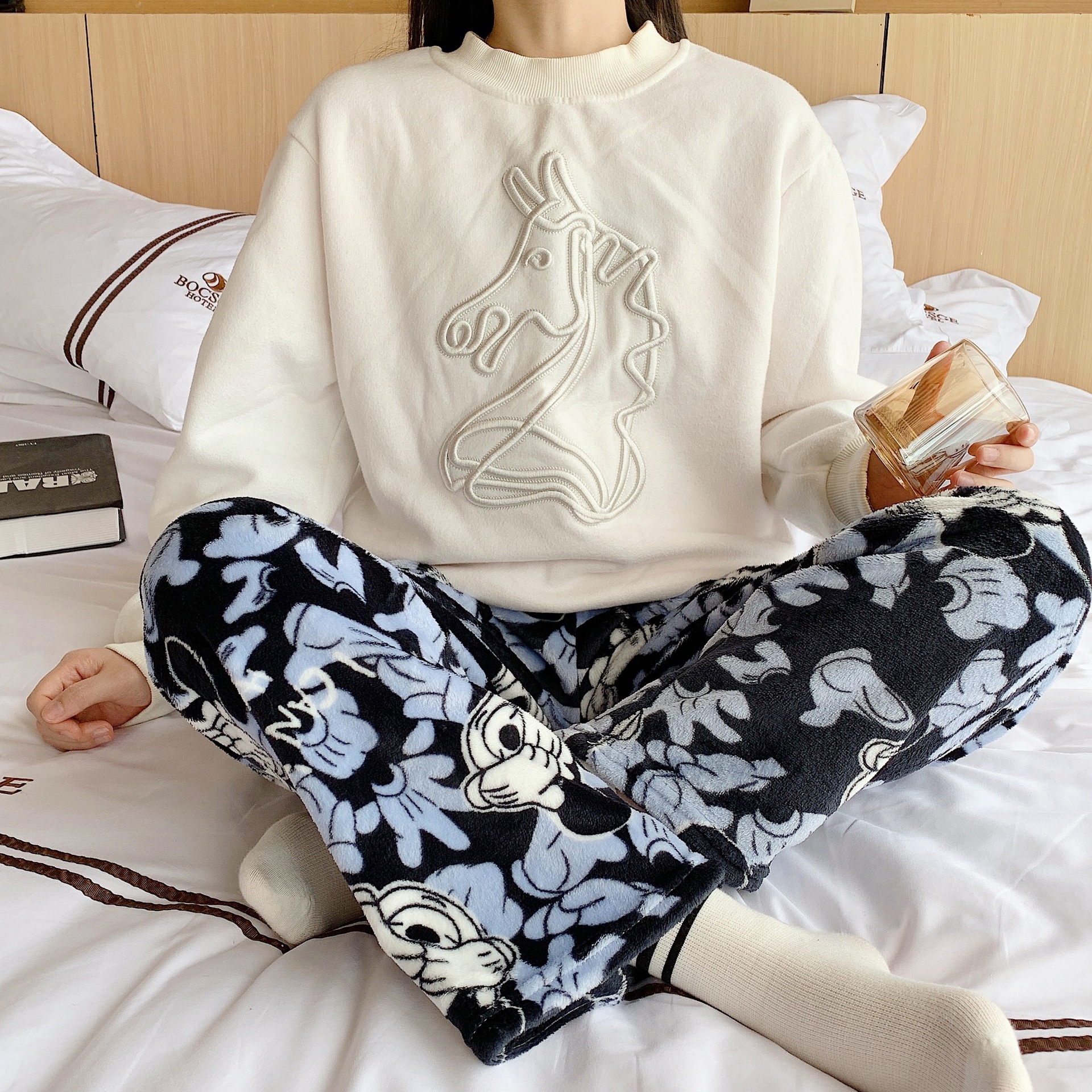 漫画フランネルパジャマ女性の秋と冬の新しい暖かい冬厚いホームパジャマ漫画パンツトレンディ