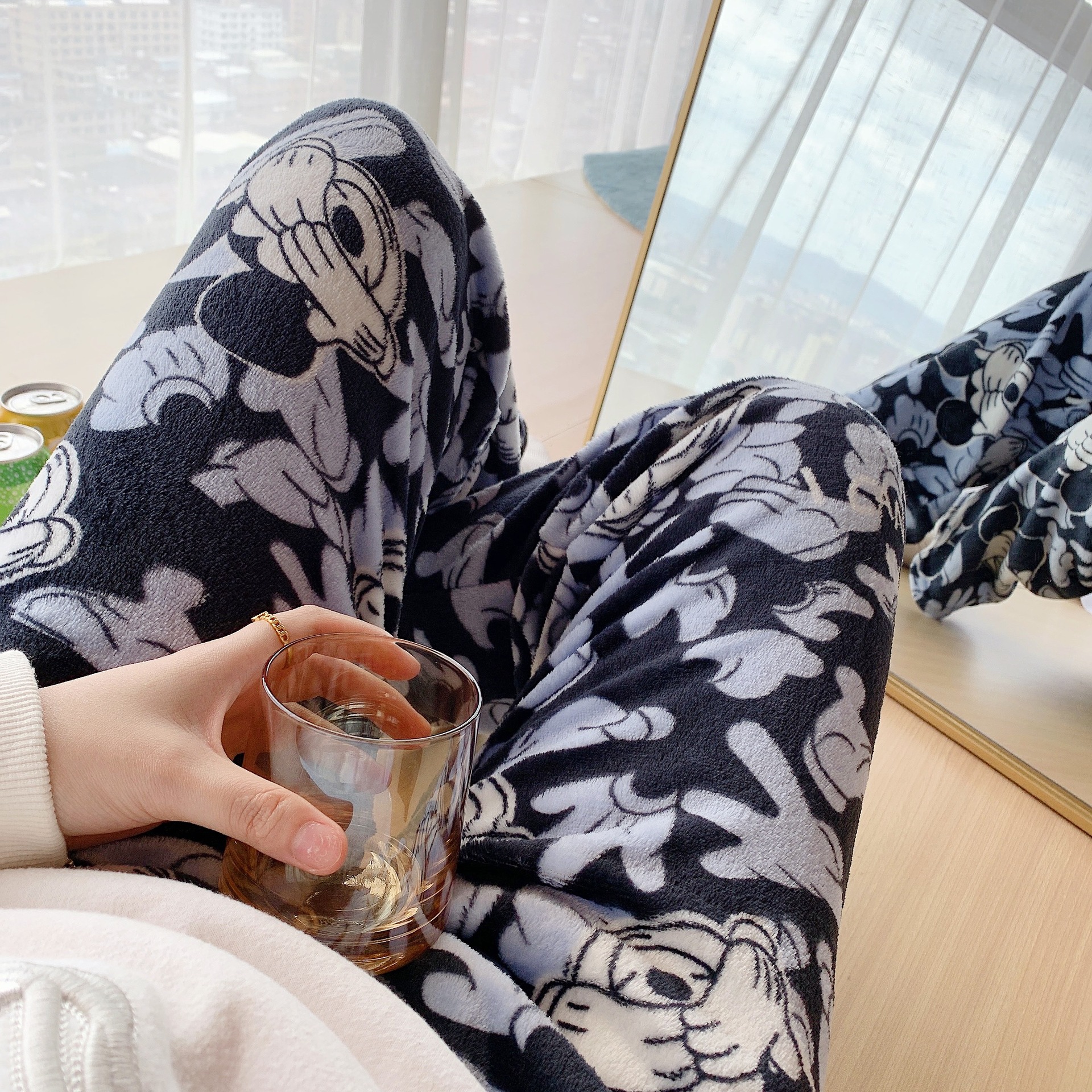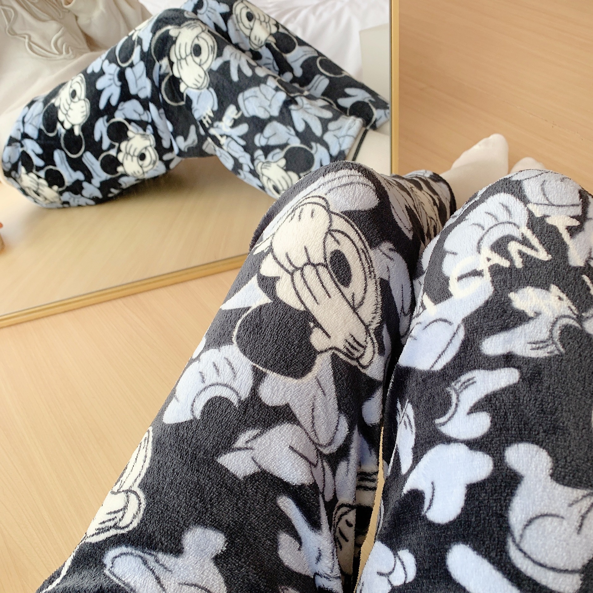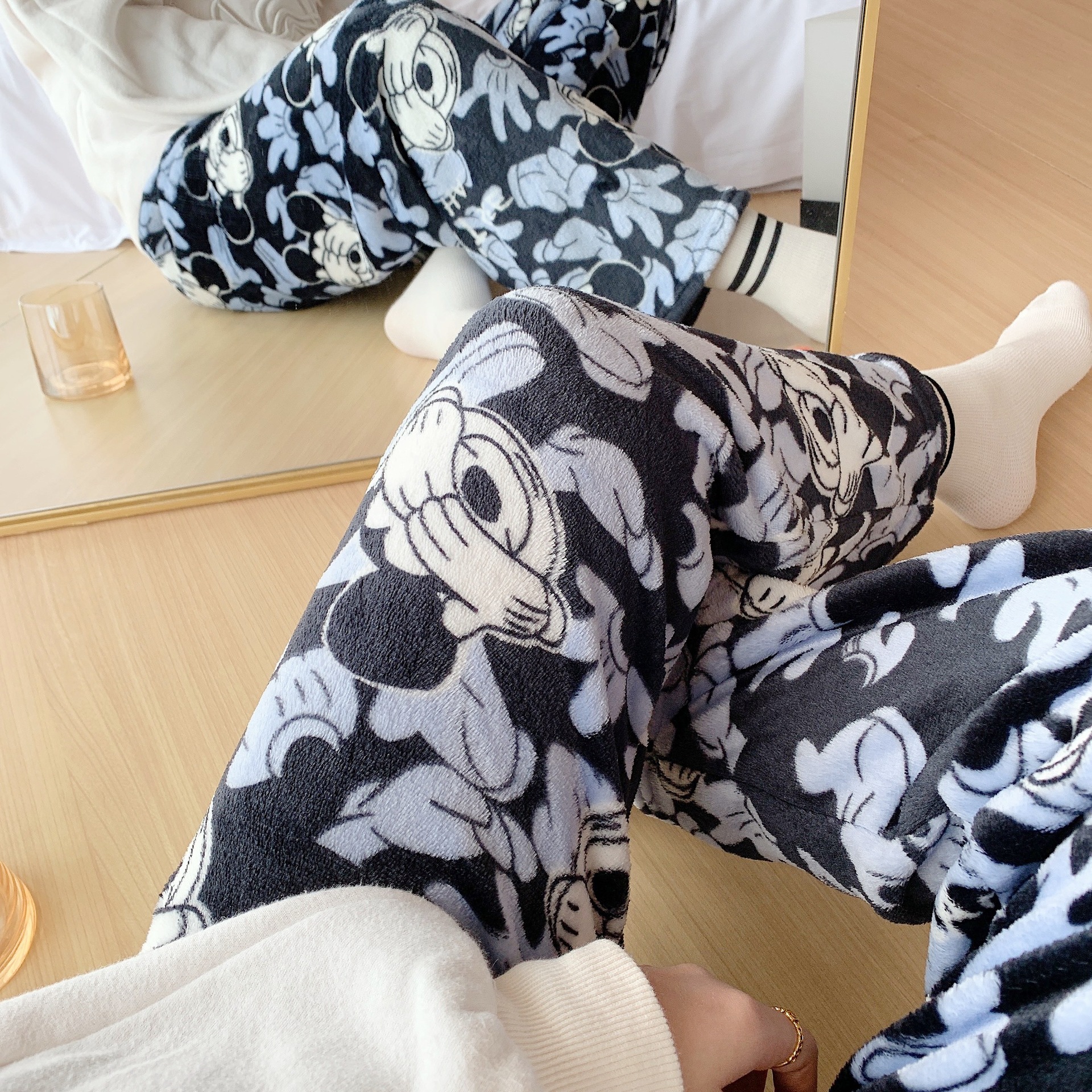 アニメのミッキーフランネルの寝ズボンの女性秋冬の新型のサンゴの毛が厚くて、暖かいレジャーの家のズボンがあります。