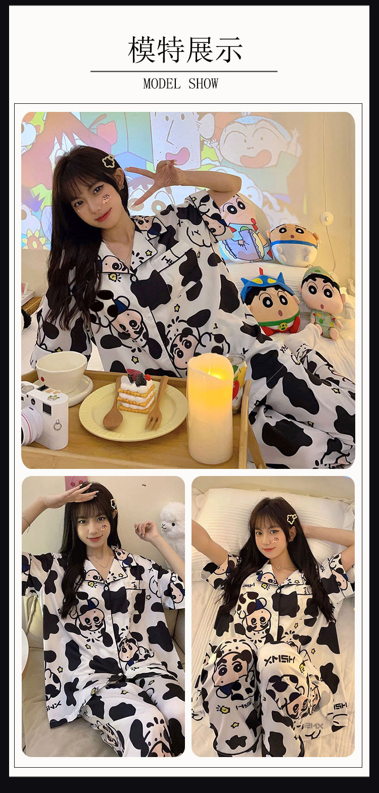東南アジア越境夏のパチャ犬小新アニメ少女半袖長ズボンパジャマ女性ゆったりカジュアル2点セット