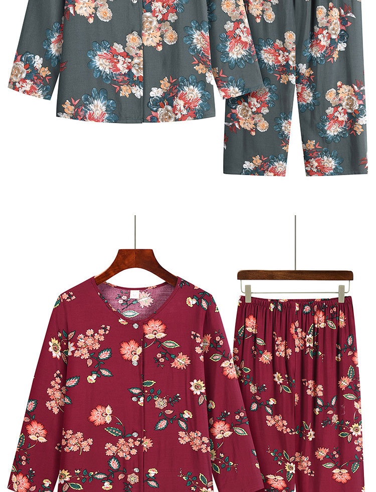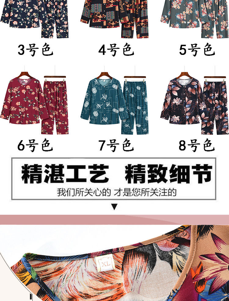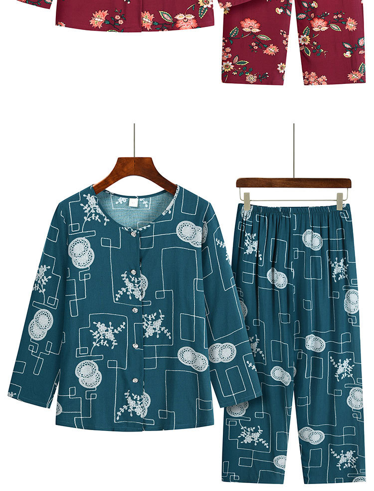 中高年女性用綿シルクパジャマ 春夏 長袖長ズボン2点セット 中年ママ向け綿シルクホームウェア 外出着