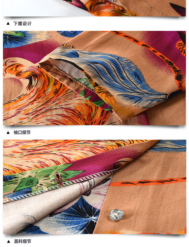 中高年のお母さんは夏の丸首のプリントのカーディガンのセットを詰めます。