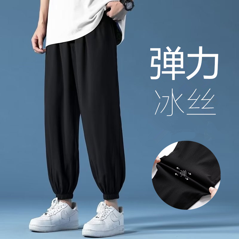 シャツの少ない服装の氷糸のズボンの男性の韓国版の夏の薄いタイプのゆったりしているタイプの足の9分のスポーツのズボンのカジュアルなズボン
