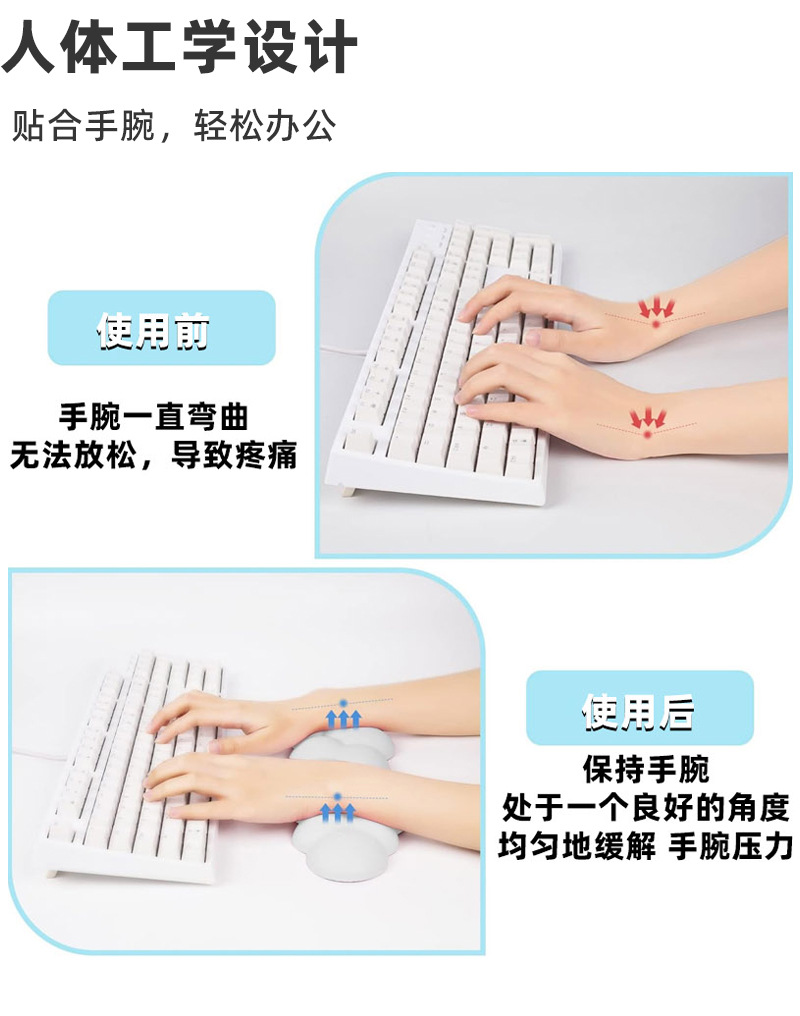 国境を越えた新製品の雲の手はキーボードを支えて大きいサイズの記憶綿のデスクトップの事務の滑り止めの腕のキーボードの手を支えます。