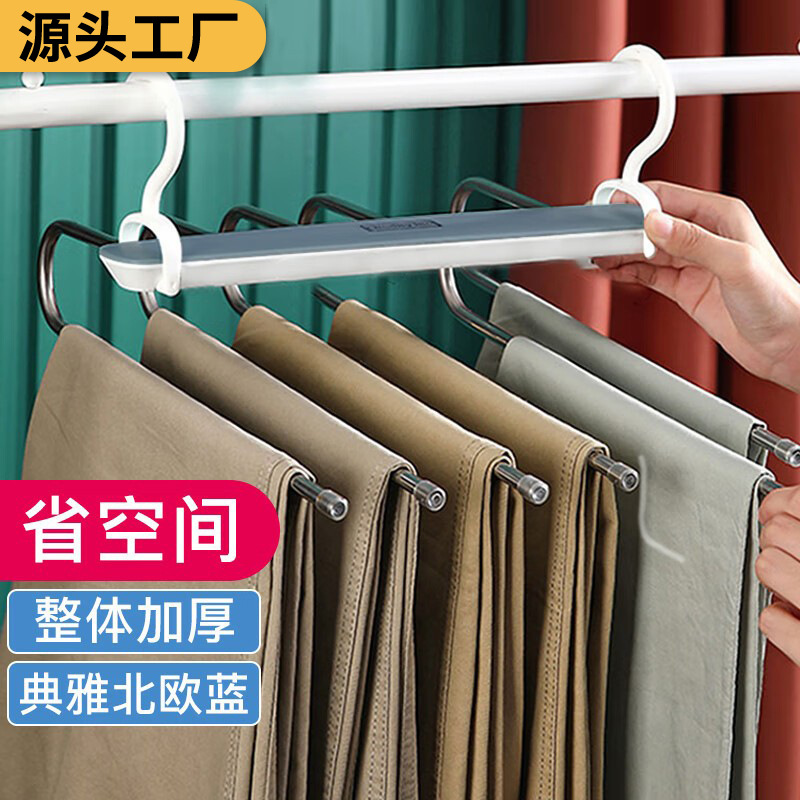 現物卸売りマジック折り畳みズボンラック家庭用伸縮可能折り畳み省スペースズボンラック6本
