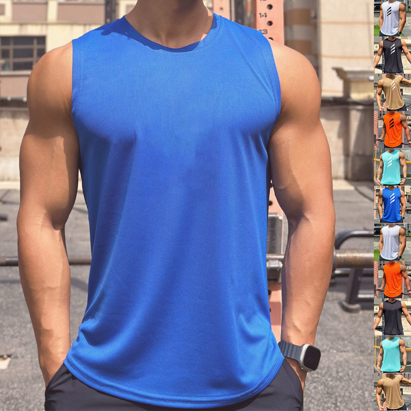 夏のメンズスポーツ速乾ベストファッションカジュアルフィットネスノースリーブチョッキ通気性ルーズトレーニングラウンドネックTシャツ