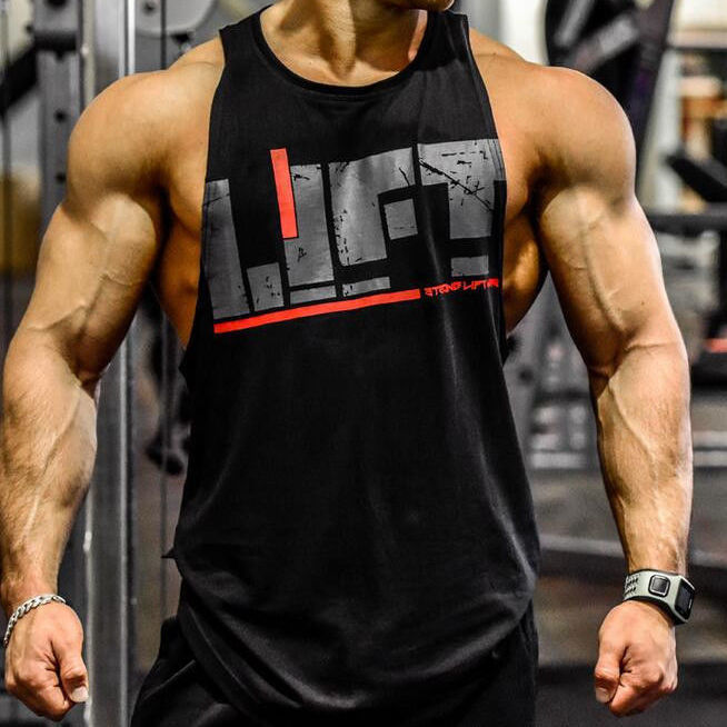 Ebayプリントフィットネスベスト男性綿工字ベスト欧米コードゆるいメーカー直販