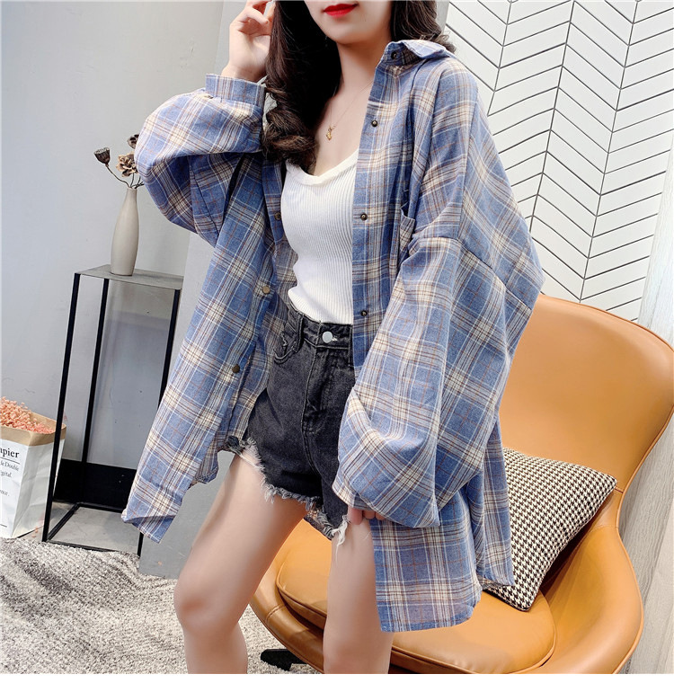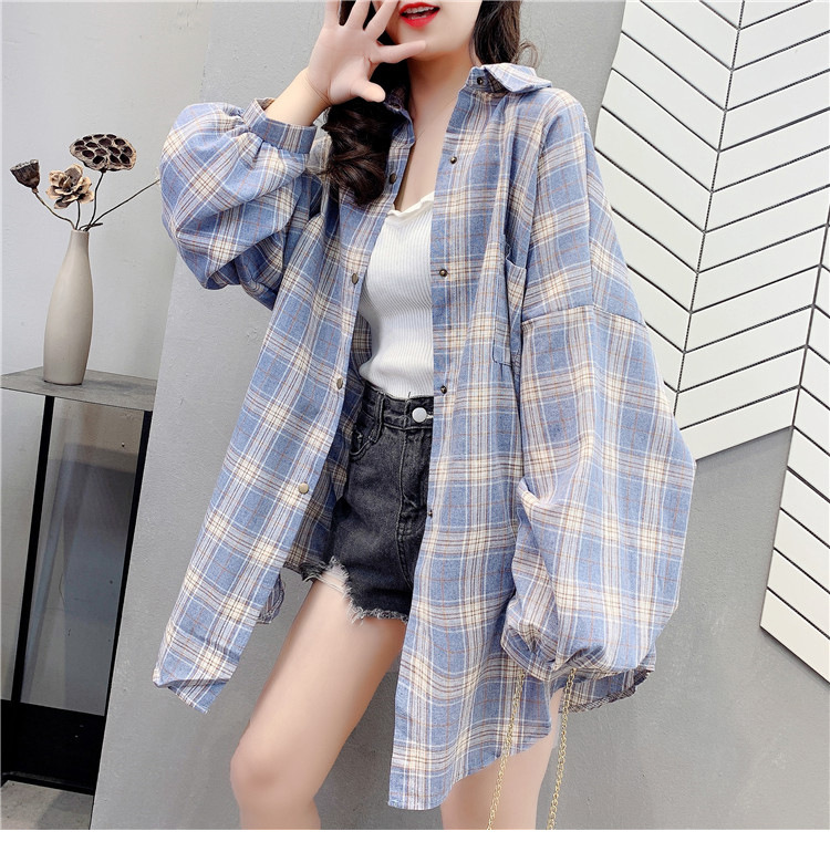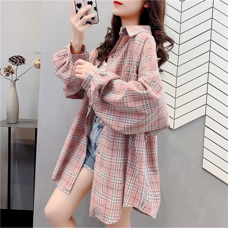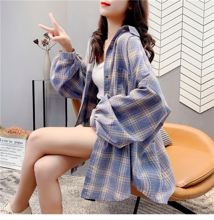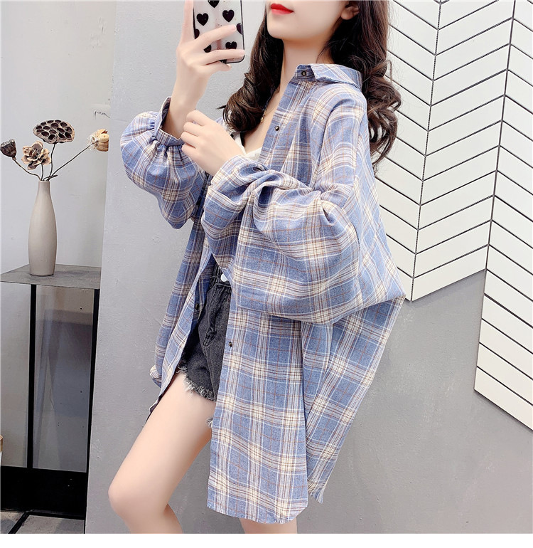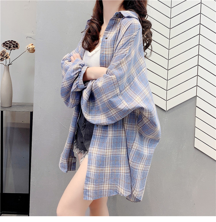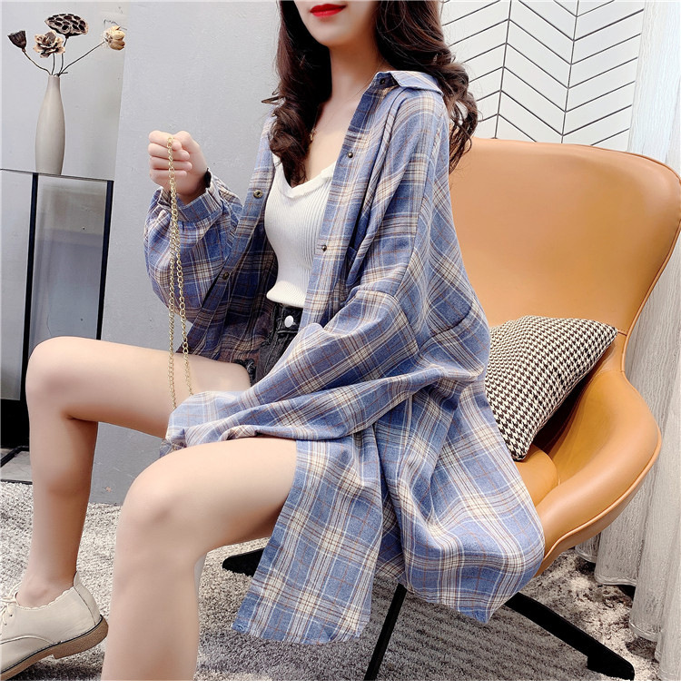 中長の格子のシャツの女性の復古の港の味の上着の2023年の新型の春の洋風のネットの赤いシャツのコートのファッション