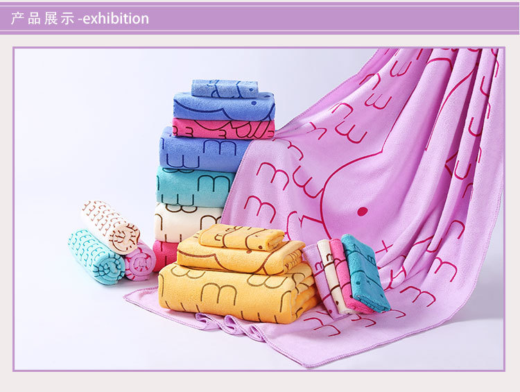 メーカー極細繊維四角いタオルバスタオル3点セットウサギ漫画プリント70*140フィリピンビーチタオル
