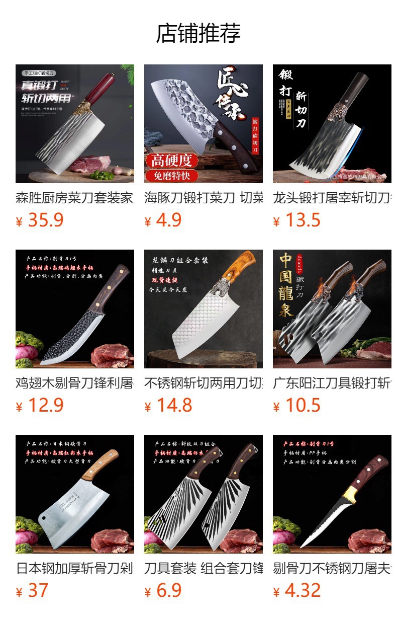 手で鍛錬して骨刀を切ります。料理人専用の包丁は豚の牛や羊の大骨を厚く切って骨を切ります。