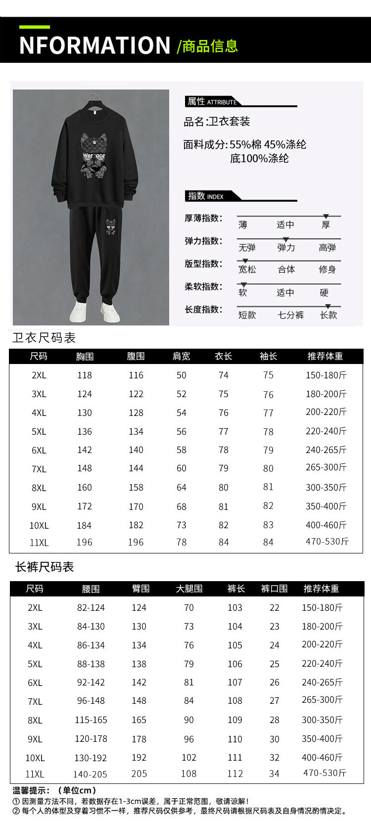 DW1001-DW1042特大サイズ400斤運動綿合集デブ不加毛衛衣ズボン男秋冬