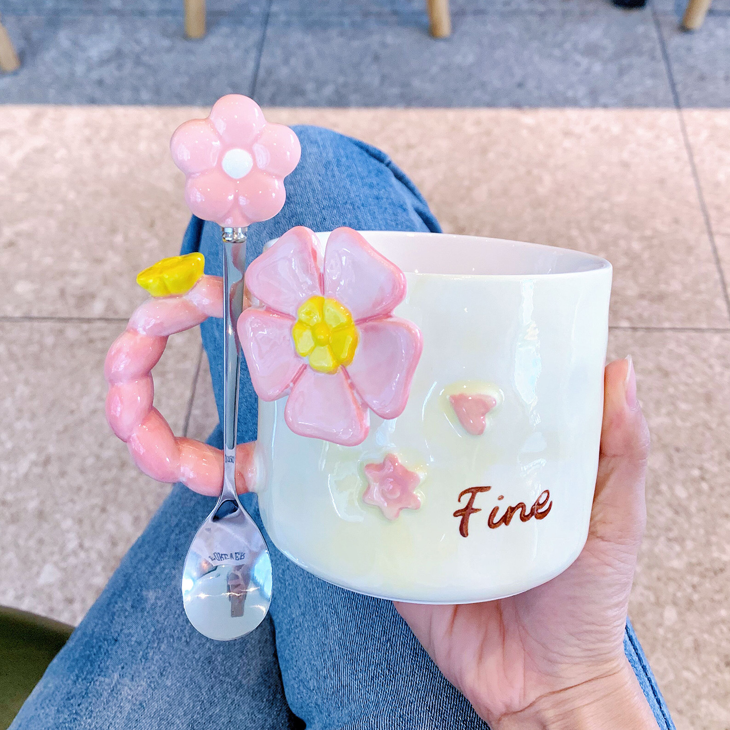 高颜値花マグカップデザイン感コップ少女心マグカップ手描きカップ誕生日プレゼントプレゼント