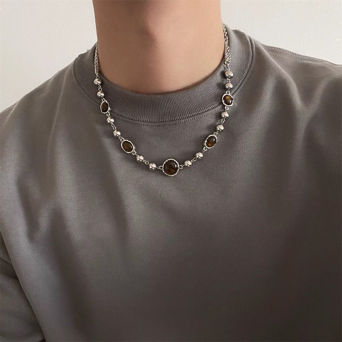 潮クールチタン鋼鋼玉リベットステッチネックレス男小衆デザインヒップホップ冷淡風鎖骨チェーンセーターチェーンアクセサリー