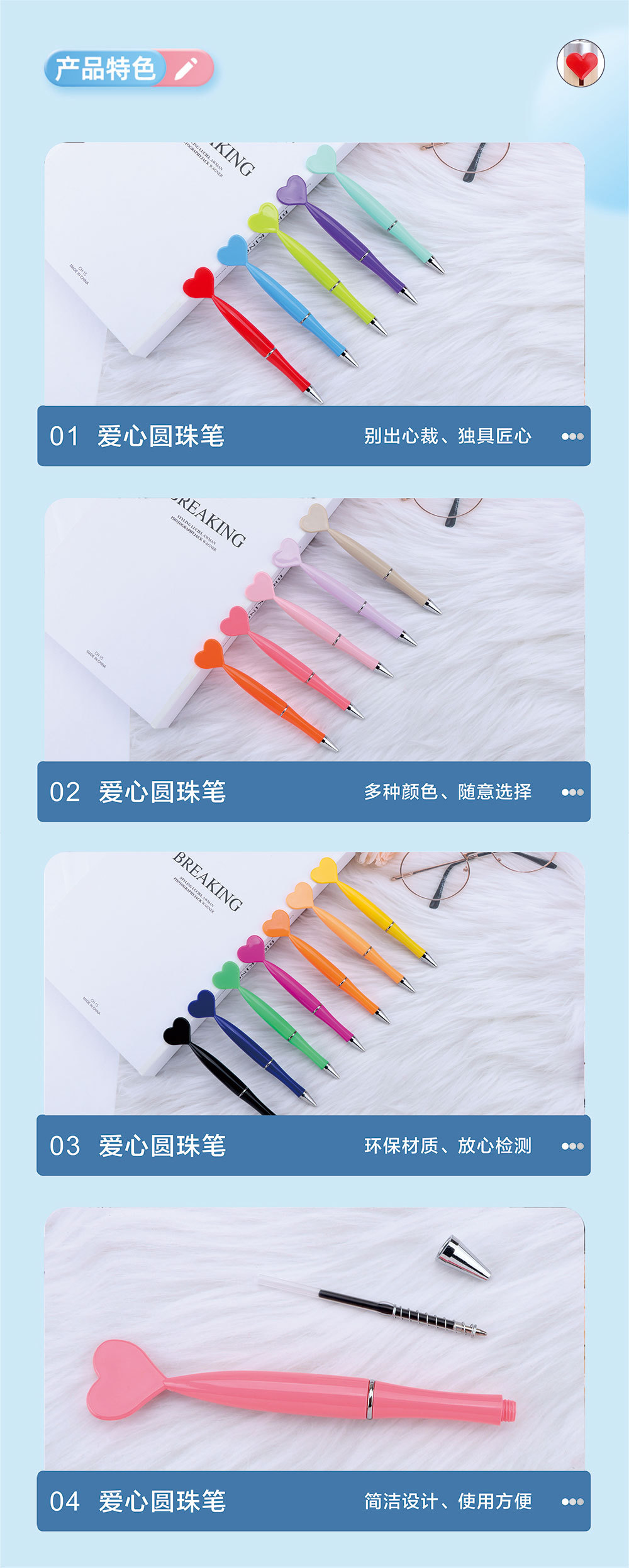 愛のペンのバレンタインデーのペンのクリスマスの丸い節のペンの看護師の日の感謝祭のロゴのハート型の形の広告のペン