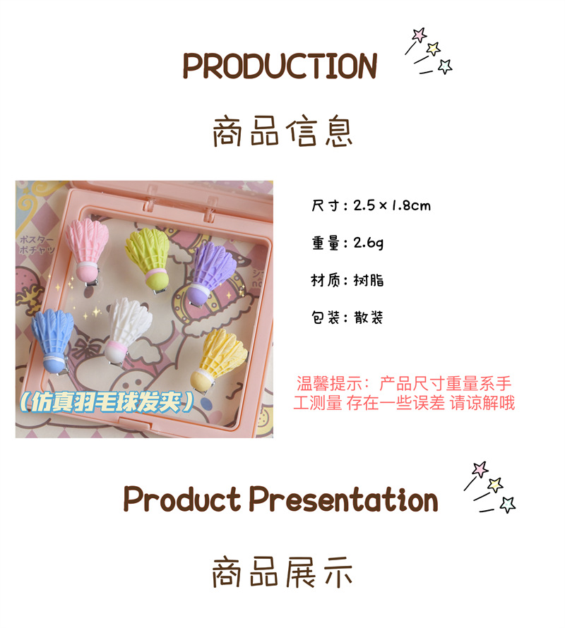 カラー 1 # ピンクバドミントンヘアクリップ,2 # 青いバドミントンのヘアピン,3 # 紫色のバドミントンのヘアピン,4 # 黄色のバドミントンのヘアピン,5 # 白いバドミントンのヘアピン,6 # グリーンバドミントンヘアクリップ