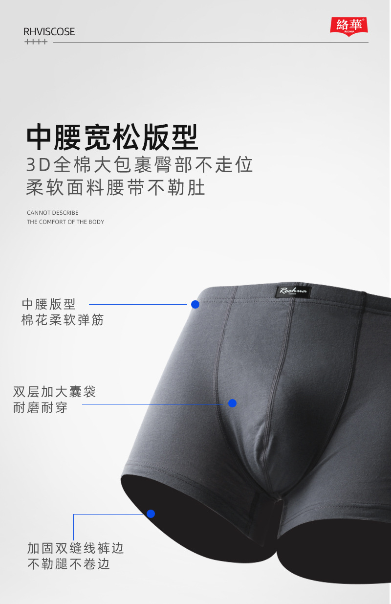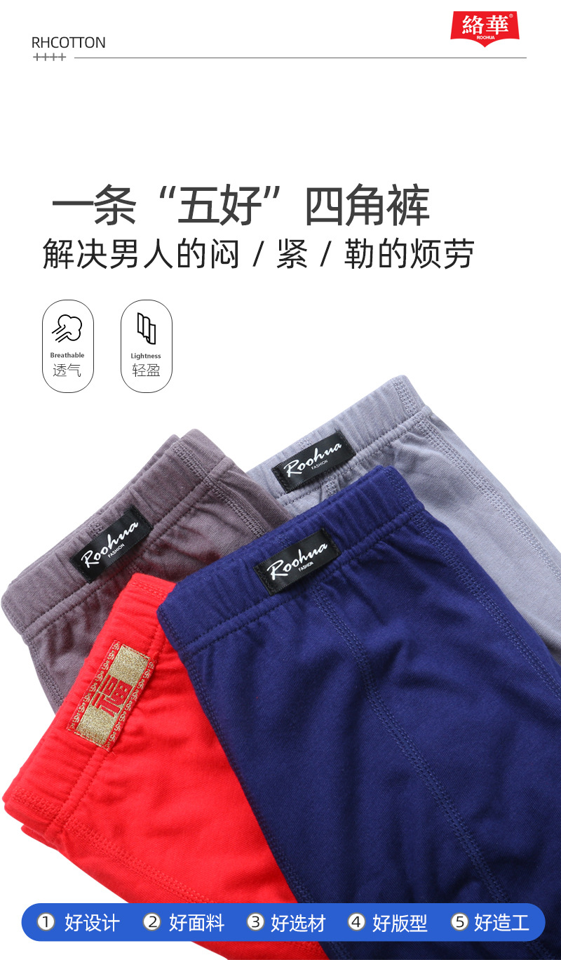 絡華青年下着男平角純綿質通気中腰ゆったり快適四角ズボン頭ケース代件