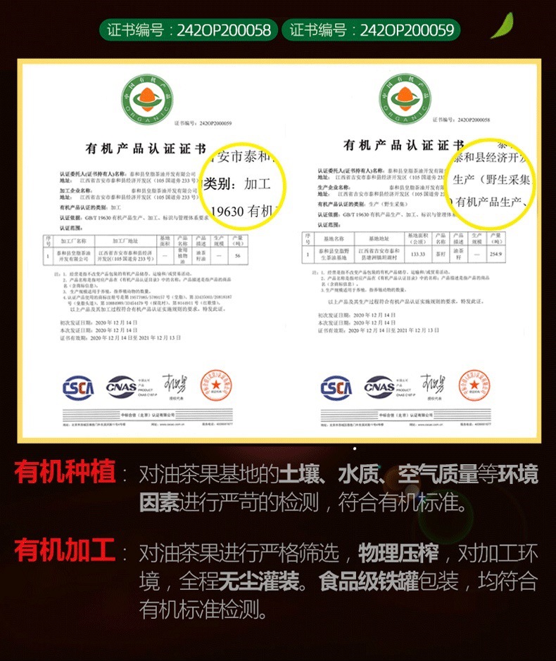 井江有機ツバキ油純正野山茶実油物理生搾り茶子油月子食用油メーカー直販