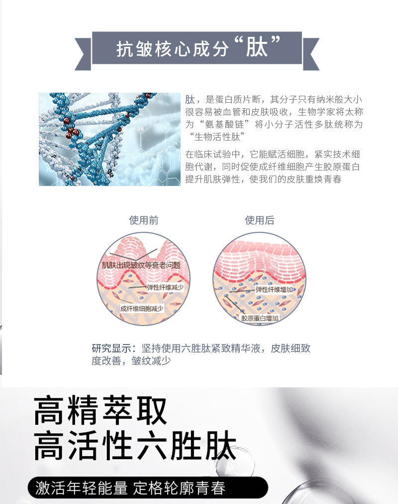 六勝ペプチド原液は法律の紋様を引き締めて顔のしわに抵抗して保湿します。