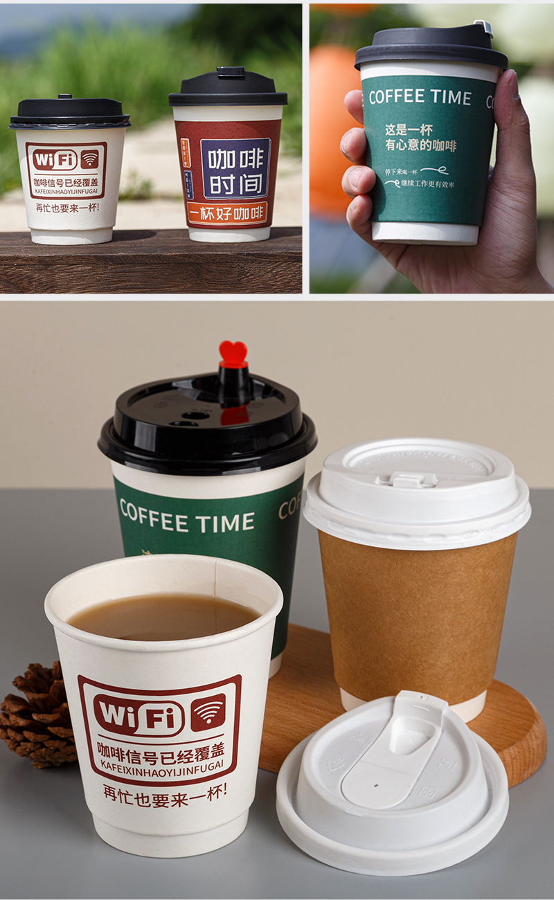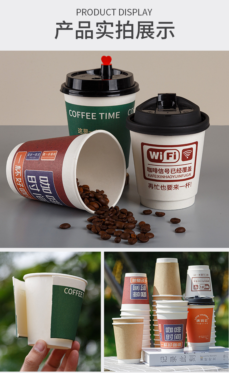 コーヒーカップ使い捨て外付け梱包カップ二重パーマ防止カップ厚品質品質蓋付き中空紙コップカスタム