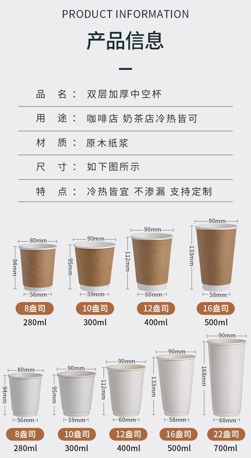 仕様 8オンス、10オンス、12オンス、16オンス、22オンス