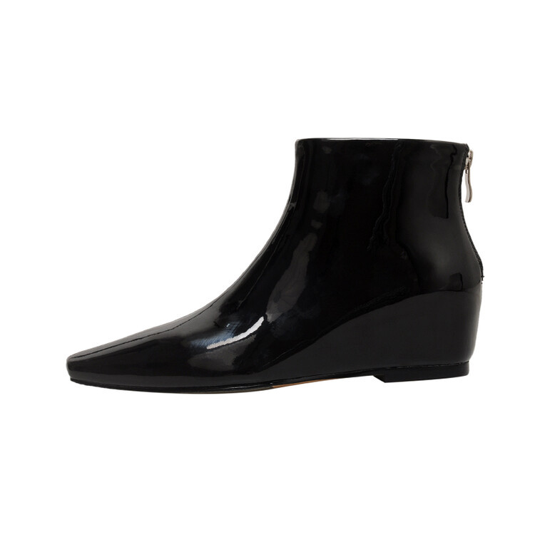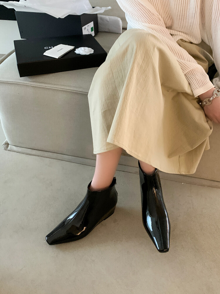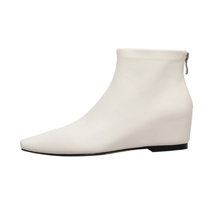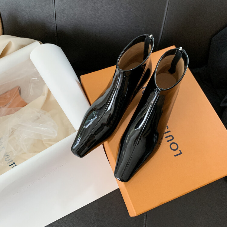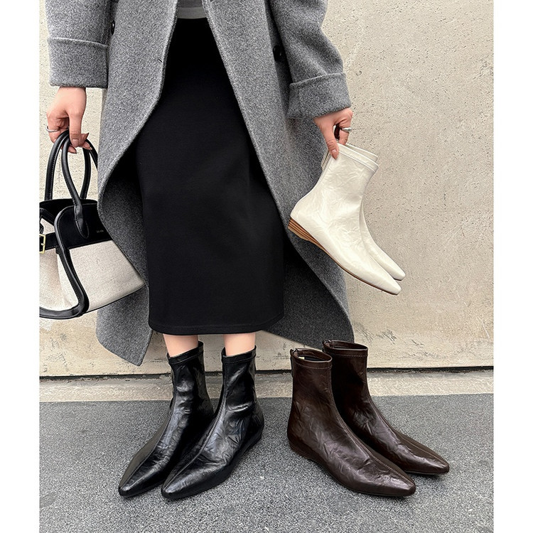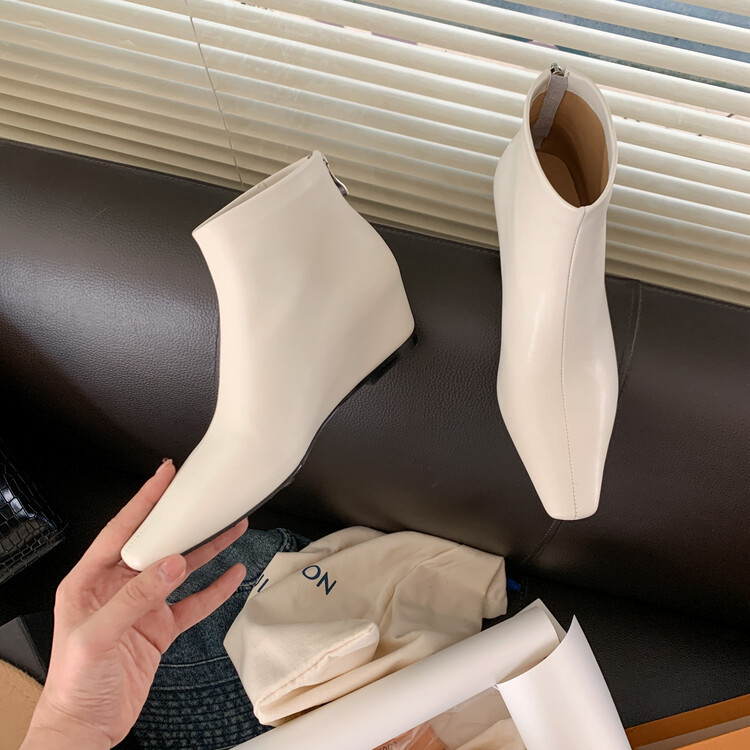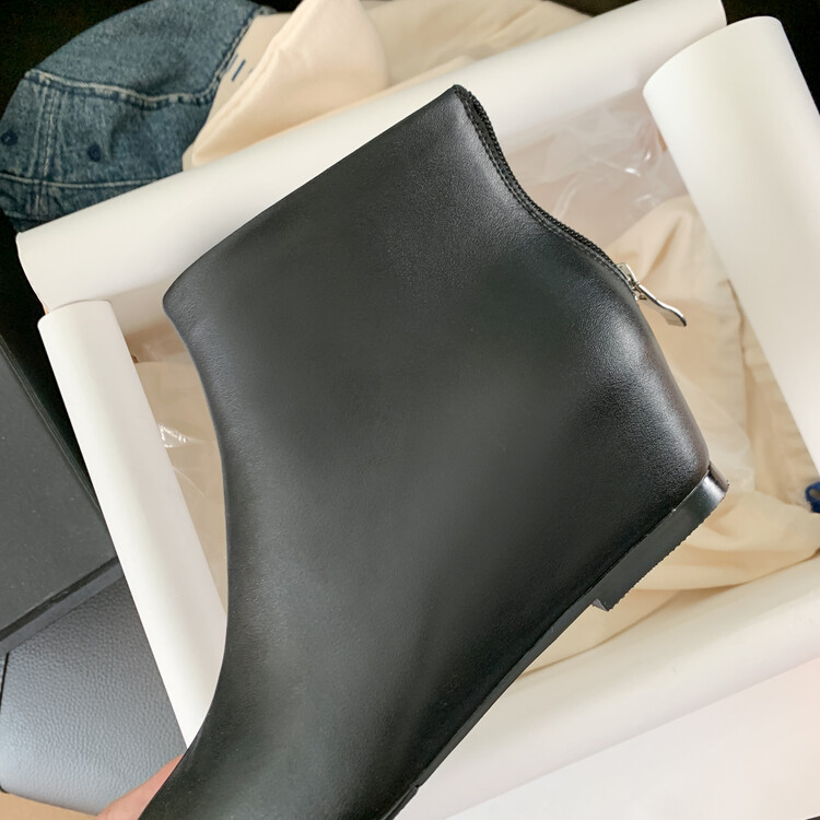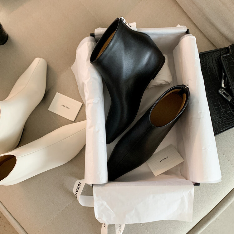本革の角のショートブーツの女性と裸の靴の秋冬の新商品の韓国版の全皮の後のファスナーの低いです。